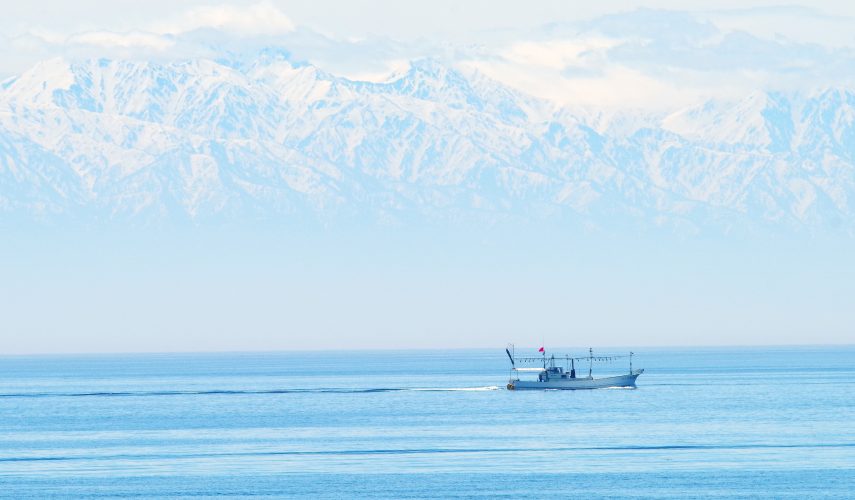家の前に望む富山湾は、とても穏やかで海に反射された太陽の光がキラキラと輝いています。