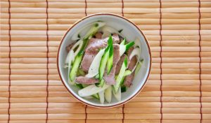 暑い夏に備えエネルギーをたくわえる『豚ハツとキュウリのニンニク和え』
